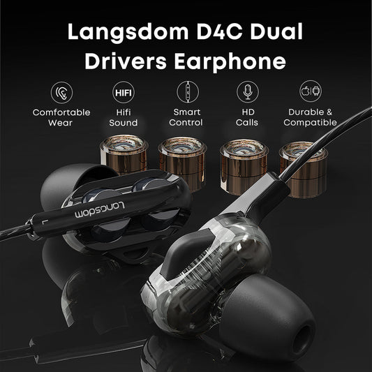 D4C – Auricolari con Cavo, Audio Nitido e Comfort Prolungato